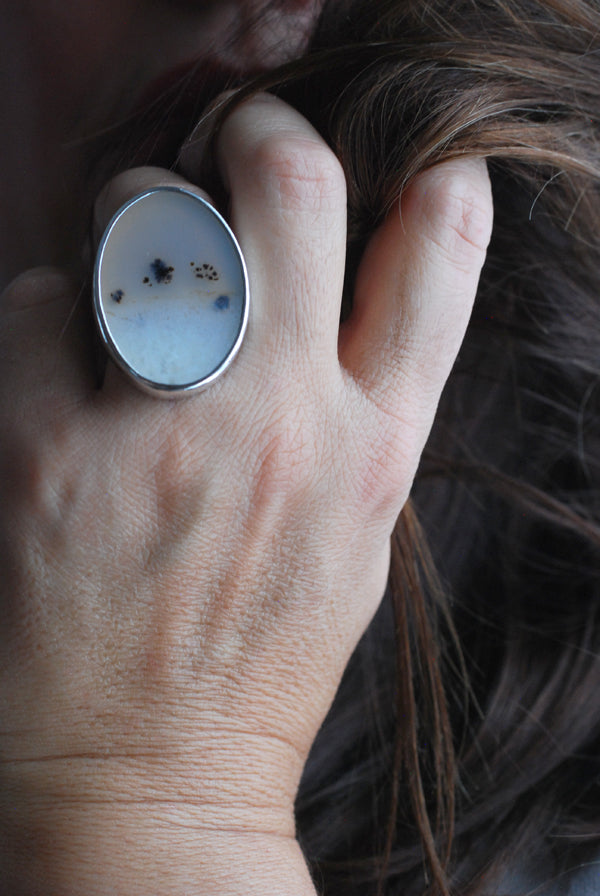 Snowy Field Ring Old Stock Montana Agate